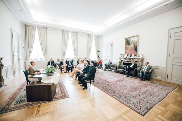 Die Trauung selbst war emotional und intim. Katrin und Fabian waren von ihren engsten Angehörigen umgeben, was die Zeremonie besonders persönlich machte. Die wunderschönen, alten Räumlichkeiten des Standesamts boten einen edlen Rahmen, der durch die warmen Sonnenstrahlen an diesem Frühlingstag noch mehr zur Geltung kam.