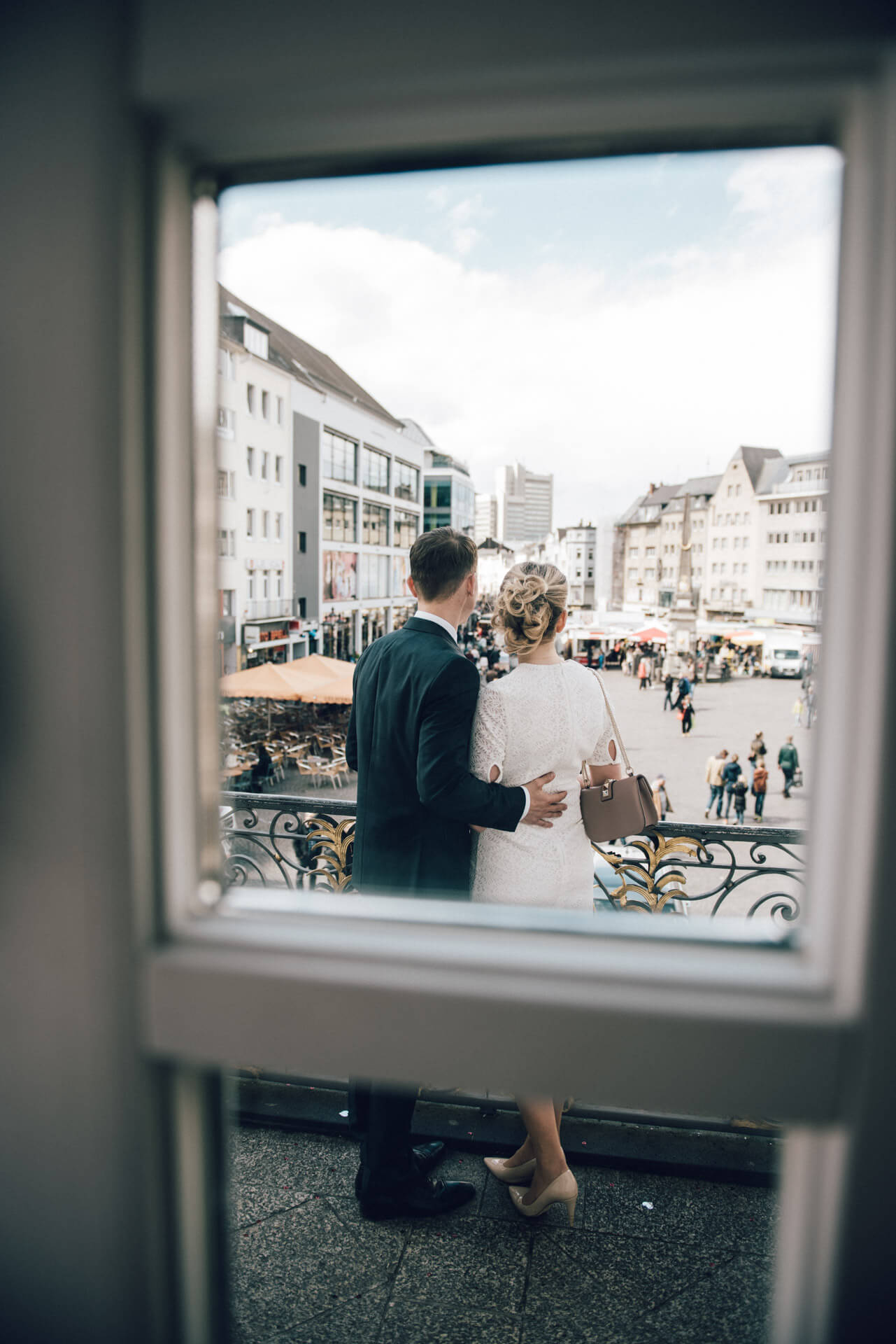 Katrin und Fabian haben sich für ihre standesamtliche Trauung das wunderschöne Alte Rathaus am Markt in Bonn ausgesucht. Diese Location ist ein wahrer Klassiker und für Hochzeiten einfach perfekt. Das Gebäude mit seiner beeindruckenden Barockfassade und den vergoldeten Verzierungen strahlt eine besondere Eleganz aus. Beim Eintreffen des Paares herrschte eine festliche Stimmung – Freunde und Familie hatten sich auf dem Marktplatz versammelt, um das Brautpaar freudig zu empfangen.